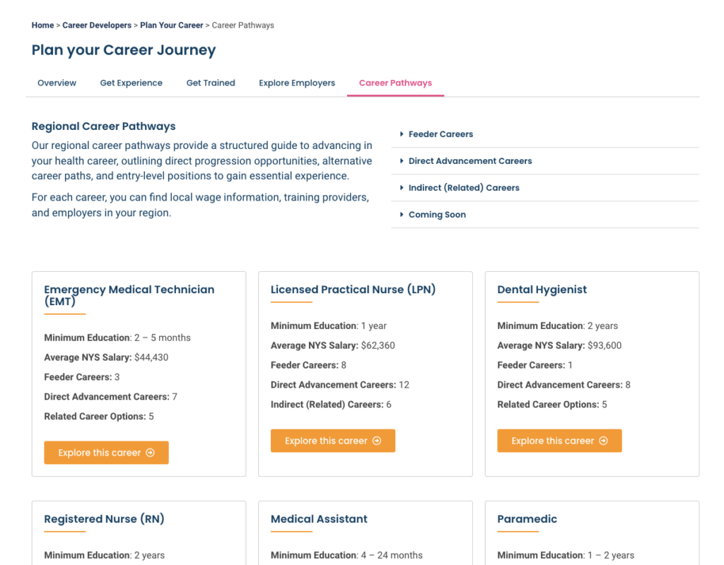 Curious about advancement or a career change? Explore other healthcare careers and plan out steps and requirements needed to get you there.